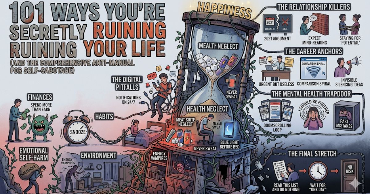If you looked at that image and saw yourself in the “Digital Pitfalls” maze, trapped by “The Career Anchors,” or drowning in the “Health Neglect” hourglass, this guide is for you. Here is how to dismantle that machine of self-sabotage, brick by brick.