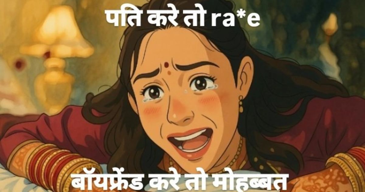 Yet the dominant reaction? Denial dressed as comedy. “It’s propaganda.” “Feminists ruining marriage.” “In real families, this doesn’t happen.” Men’s rights accounts celebrate the “massive backlash” and “red-pilling” millions of men. Toxic posts frame consent as a girlfriend privilege that evaporates the moment sindoor is applied: “Boyfriend = consent, Husband = right.” One widely shared meme mocks the victim: “Suhag raat hai—he raped me.”